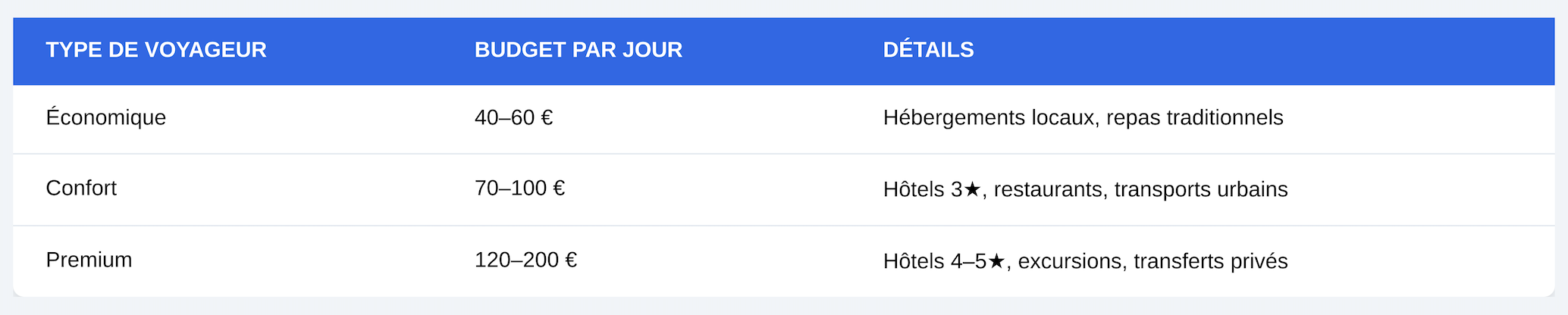 Le Maroc reste une destination abordable, même pendant la compétition. Voici une estimation du budget moyen selon votre style de voyage :
